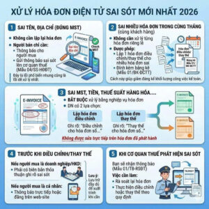 Trong bối cảnh cơ quan thuế ngày càng siết chặt quản lý bằng dữ liệu số, việc lập và xử lý hóa đơn điện tử đòi hỏi doanh nghiệp phải chính xác ngay từ đầu. Tuy nhiên, sai sót là điều khó tránh khỏi trong quá trình xuất hóa đơn. Vì vậy, nắm rõ cách xử lý hóa đơn điện tử sai sót theo quy định mới nhất năm 2026 sẽ giúp doanh nghiệp giảm thiểu rủi ro và tránh các khoản xử phạt không đáng có.