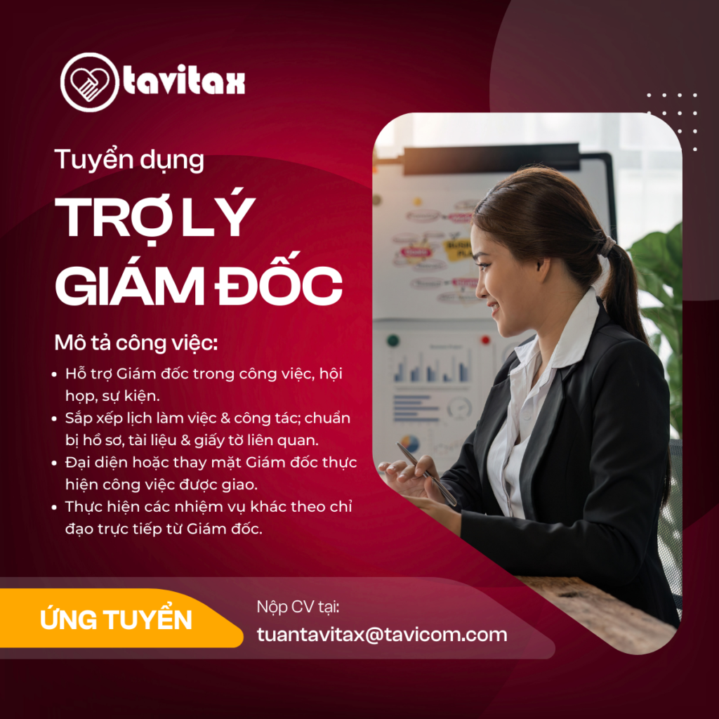 [TUYỂN DỤNG: TRỢ LÝ GIÁM ĐỐC] Công ty TNHH Đầu Tư Phát Triển Tavitax đang tìm kiếm vị trí Trợ