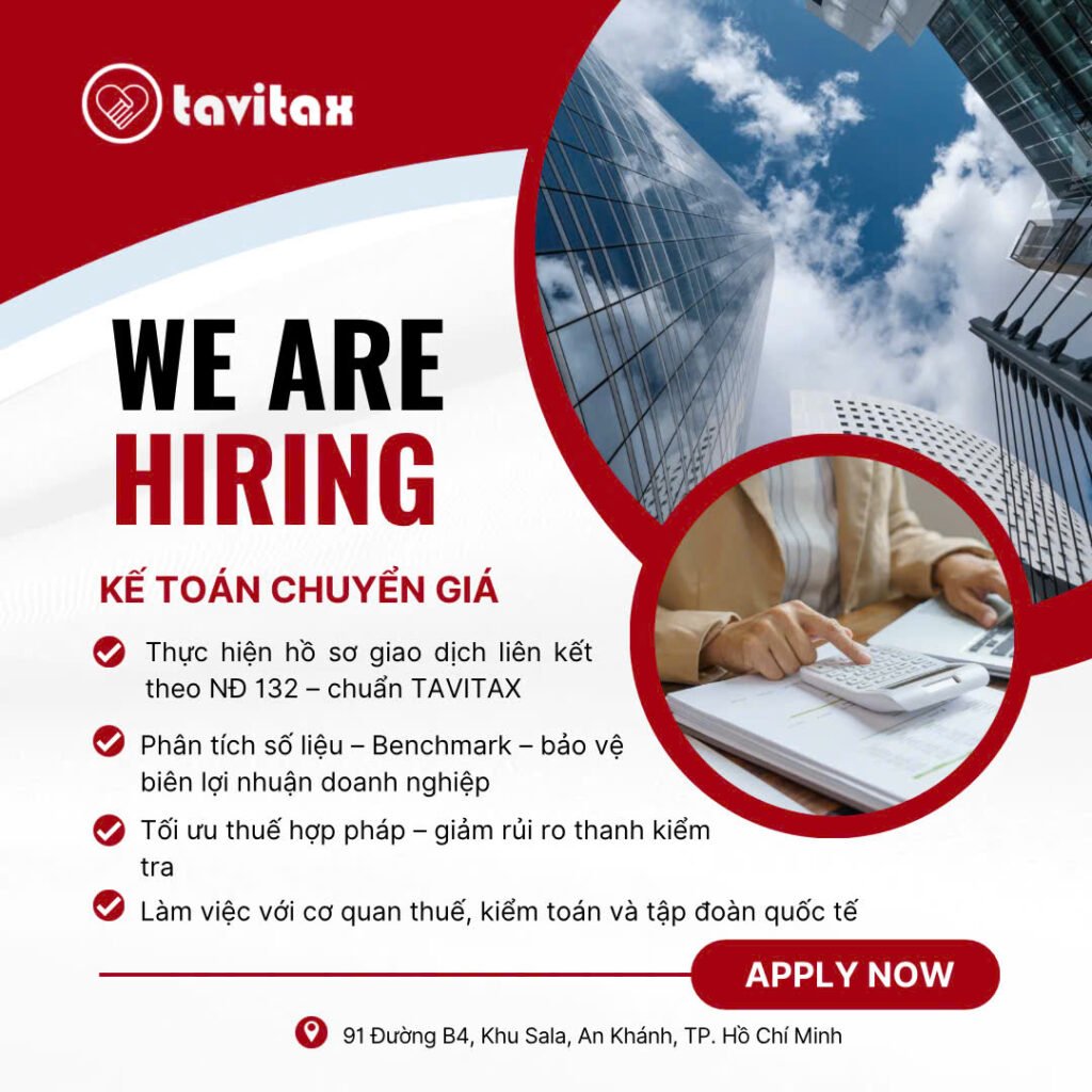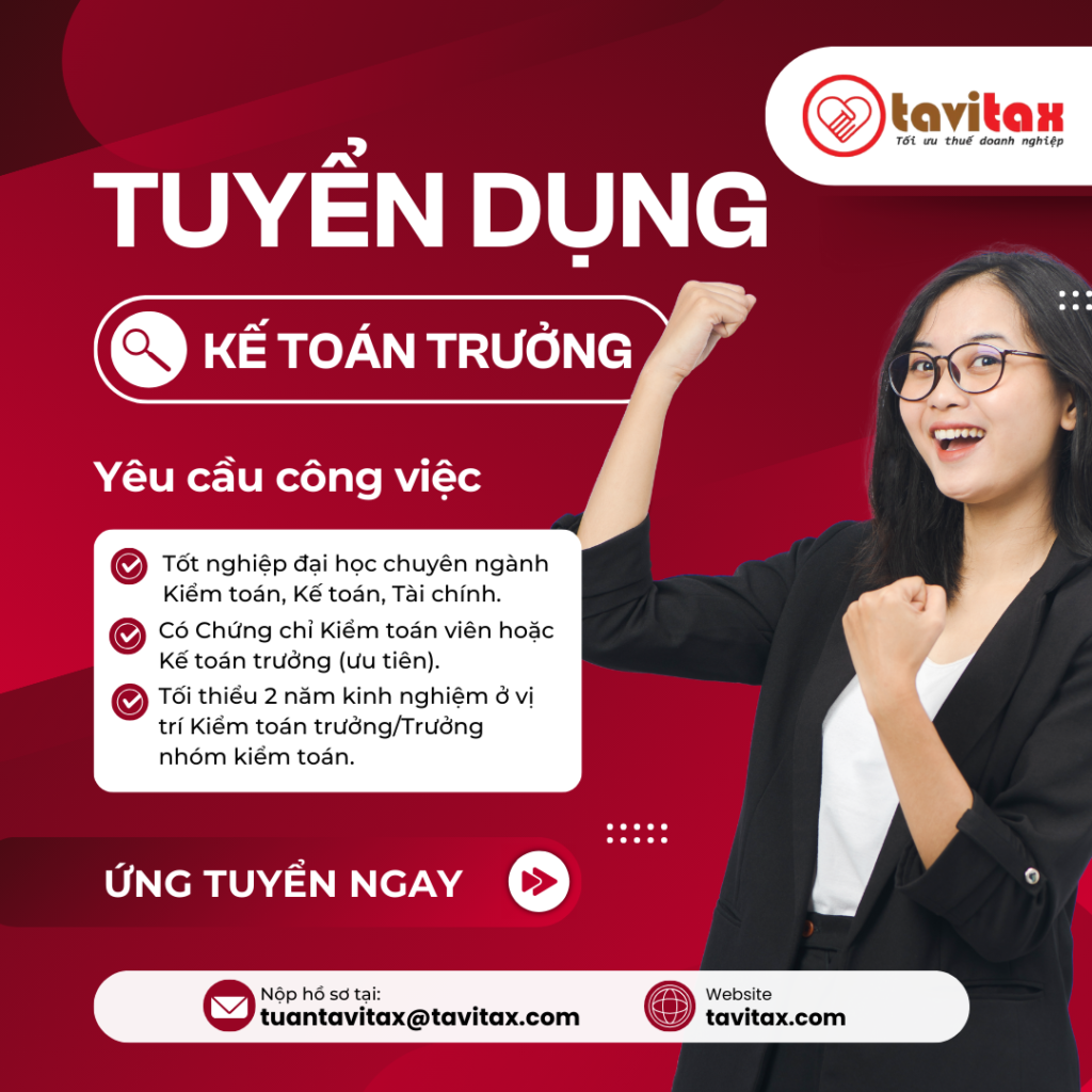 [TUYỂN DỤNG KIỂM TOÁN TRƯỞNG] Công ty TNHH Đầu Tư Phát Triển Tavitax đang tìm kiếm vị trí Kế Toán